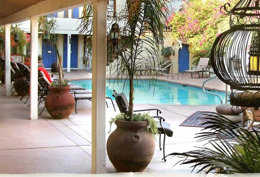 A beautiful and charming hotel, hidden away in the heart of Palm Springs. Individually decorated rooms. Pool, hot tub, spa - a perfect and secluded hotel to relax in, as the sun sets over the San Jacinto mountains in full view. Smart, slick and stylish, featuring a Moroccan interior.