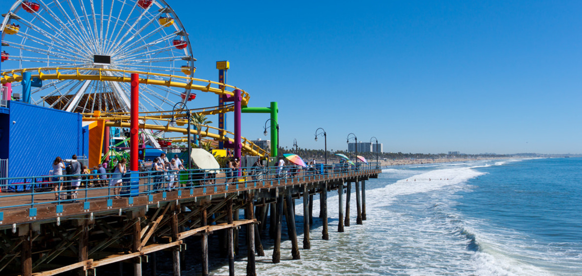 La plage de Santa Monica, immense étendue dorée, est depuis longtemps la principale attraction de la ville. Passez vos journées à flâner sur le sable, à perfectionner vos talents de surfeur, à vous baigner ou à pratiquer toute une gamme de sports nautiques. L'essentiel de l'action se concentre autour de la jetée de Santa Monica. Construite en 1908 et marquant la fin de la Rotue 66, la jetée abrite une fête foraine, des arcades, des bars et de nombreux restaurants. Promenez-vous en patins à roulettes, choisissez un perchoir pour observer les gens, ou visitez l'aquarium, le cinéma en plein air et la "Muscle Beach" d'origine. Les visiteurs actifs peuvent également explorer le Tongva Park - idéal pour les familles - ou le Palisades Park, qui offre une vue impressionnante sur les montagnes de Santa Monica. Aventurez-vous au-delà de la ville pour faire de l'équitation, du VTT et de la randonnée.
