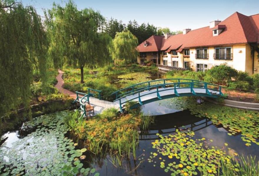 A beautiful, picturesque resort overlooking Manet-inspired pond and gardens. Reminiscent of a French Country Estate. Features a world class spa offering a sauna, steam room, treatments, private bar, and complimentary fitness classes. Escape into this magical, French inspired retreat.