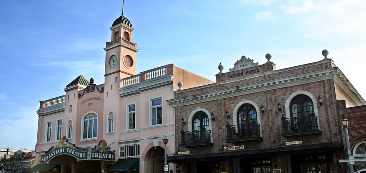 This quaint hotel sits right on the historic and bustling Sonoma Plaza. The opulent and old-world ambience is accentuated by floor to ceiling windows, ornately carved ceiling beams, antique furnishings, plush linens and palatial en suites. A free wine tasting is available for guests.
