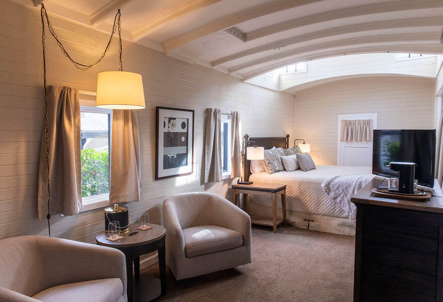 Eine moderne Boutique im Feinschmeckerparadies Yountville, Napa Valley. Die eleganten Suiten bieten Eichenholzböden, große Kamine, Sitzgelegenheiten im Freien und einige haben eine Badewanne für zwei Personen. Das Farm-to-Fork-Restaurant ist wunderbar und die Weinkarte ist erwartungsgemäß gut recherchiert und umfangreich.