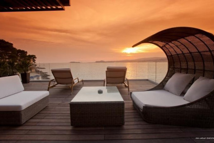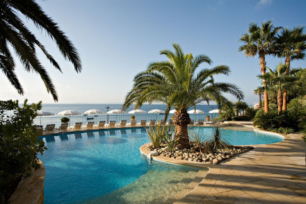 Hugely glamourous Mediterranean mansion on a clifftop peninsula. Stunning views out to sea from private balconies and luxury rooms. Private beach, salt water infinity pool, spa, gourmet food. A pearl of the ocean. Romantic, gourmet, luxury, "A" list.
