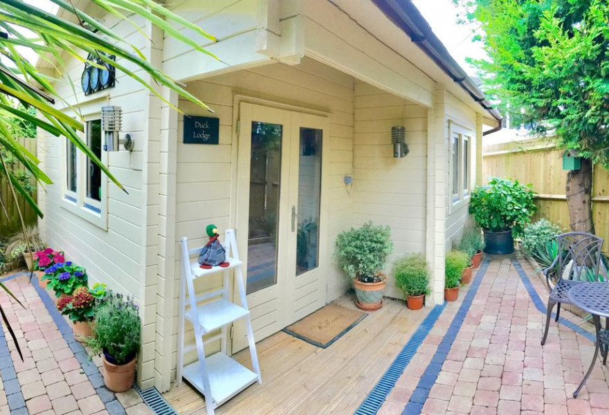 Charming, luxury log-cabin style accommodation that sleeps 4 guests. The bedroom is pretty and comfortable with fresh white linens. A hot tub is available for use. Provisions are provided for a Continental Breakfast. Great location in the South Downs National Park.
