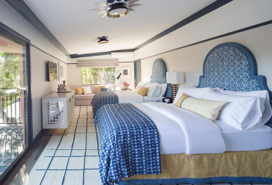 An elegant boutique hotel set in the desert in a renovated 1950s hotel. Design is Scandi-chic with pale wood furniture set besides bold blue and white patterns. Soak up the slow pace of Palm Springs, lounge by the pool sipping cocktails and enjoy California-inspired cuisine. A chic adult-only spot.
