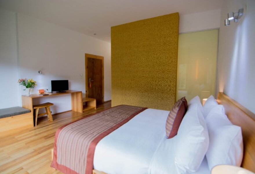 Dieses Vier-Sterne-Hotel befindet sich im Thimphu-Tal in Bhutan. Die Gästezimmer sind hell und modern eingerichtet und verfügen über große Fenster mit Blick auf den sitzenden Buddha oder den Tashicho Dzong; buchen Sie eine Suite mit separatem Wohnzimmer und Kochnische. Genießen Sie im Restaurant ein Essen im Freien; ein schickes Stadthotel.
