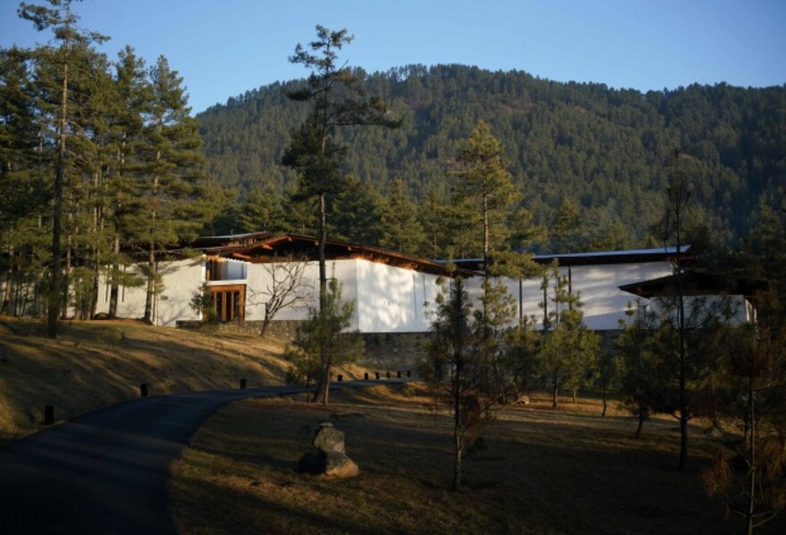 Dieses Hotel im Dzong-Stil befindet sich in der Motithang-Gegend außerhalb von Thimphu in Bhutan. Die Zimmer sind wie Mönchsquartiere eingerichtet und zeichnen sich durch minimalistische Linien mit Stein- und Holzakzenten aus; ein Johari-Herd wird täglich zubereitet, und es gibt Sessel und einen Fensterplatz zum Faulenzen. Entspannen Sie sich im Spa; ein schicker Aufenthalt.