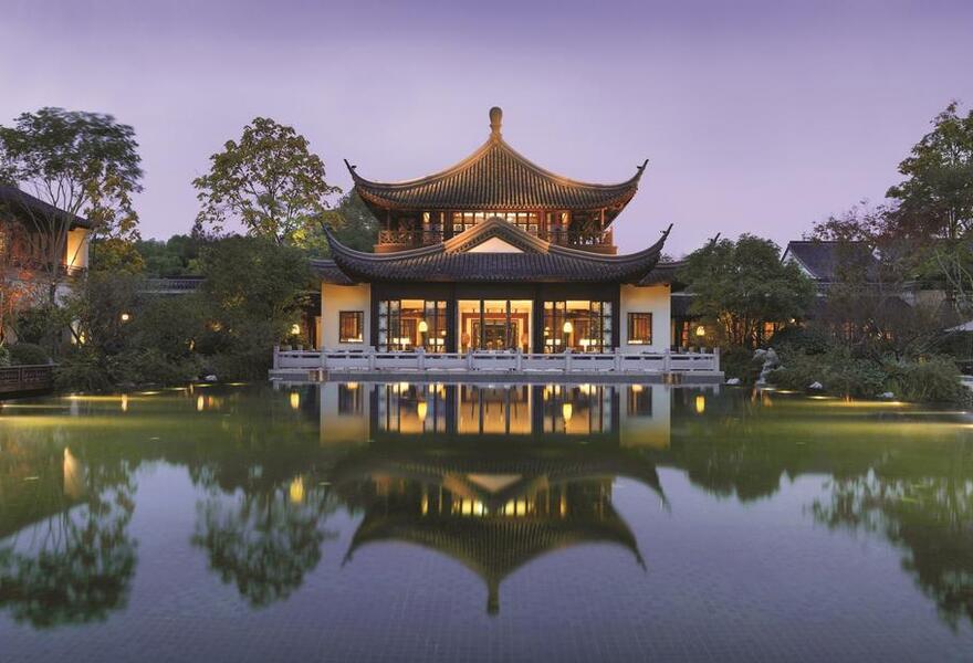 - Das Four Seasons Hangzhou at West Lake in Xihu Qu liegt direkt am See des UNESCO-geschützten Westsees. Es verfügt über großartige, geräumige Innenräume mit einem eindeutig chinesischen Flair in der Architektur und der Einrichtung. Und das Hotel ist von wunderschönen Gärten umgeben.