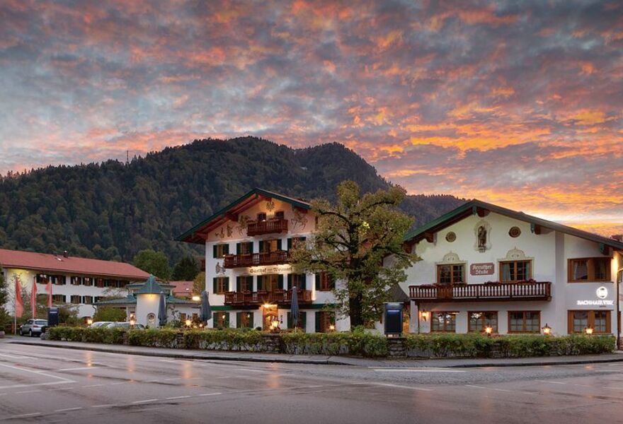 Das familiengeführte Hotel liegt in der Alpenstadt Oberammergau und bietet ein authentisches bayerisches Erlebnis mit modernem Komfort. Die Zimmer sind geräumig und verfügen über die typische Holzvertäfelung im Chalet-Stil, sichtbare Balken und Balkone. Ein charmanter Ausgangspunkt für Ski- und Wanderurlaube.