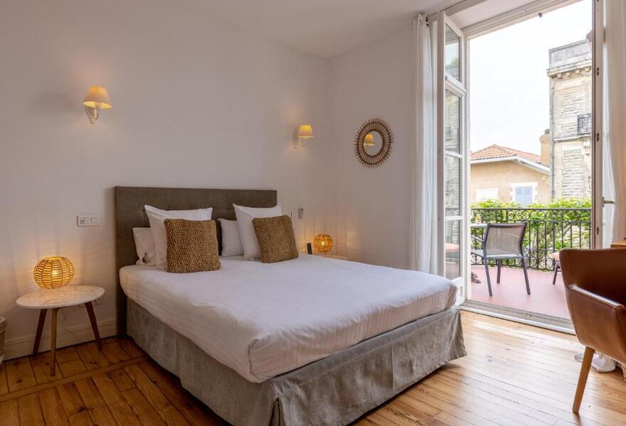Eine frische und moderne Ergänzung zu den Hotels in Biarritz. Ein schönes Sandsteingebäude mit coolen, modernen Zimmern und einem schönen Garten. Ein charmanter Ort zum Verweilen, eingebettet in die Straßen der Stadt, mit tollen Restaurants und einem täglichen Markt in der Nähe.