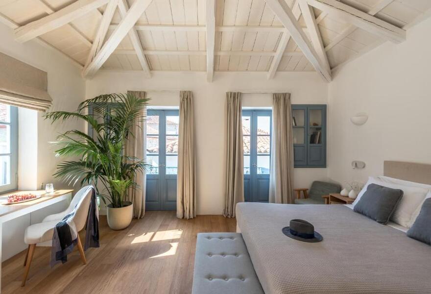 Dieses Boutique-Hotel liegt auf der atemberaubenden Insel Hydra und bietet einen ruhigen Blick auf die Ägäis. Die schicke Inneneinrichtung ist in Erdtönen gehalten, mit natürlichen Texturen und dezenten Farbtupfern, die eine gemütliche und doch moderne Atmosphäre schaffen. Die Sonnenterrasse und die Nähe zu den örtlichen Restaurants machen es zu einem idyllischen Rückzugsort.