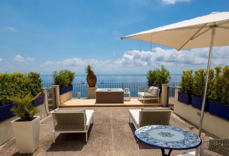 Es gibt so viele fantastische Unterkünfte an der Amalfiküste, und viele von ihnen bieten spektakuläre Aussichten, aber Amalfi und seine unglaubliche Anfahrt (entlang einer Corniche, die sich auf der einen Seite an hoch aufragende Klippen klammert und auf der anderen Seite steil ins saphirblaue Meer abfällt) ist für viele Menschen etwas ganz Besonderes. Die Stadt war einst eine Seemacht, wandelte sich aber in der Edwardianischen Ära zum Badeort, als einige der besten Unterkünfte in Amalfi errichtet wurden. Einige wurden aus großen Palazzi und Villen aus der goldenen Ära des Zentrums umgebaut, aber es gibt auch eine Reihe von Klöstern, die noch früher umgebaut wurden, sowie kleine, traditionelle Hotels, Pensionen und B&Bs. Das Preisniveau der Hotels reicht von Fünf-Sterne-Luxus bis hin zu preiswertem Komfort.