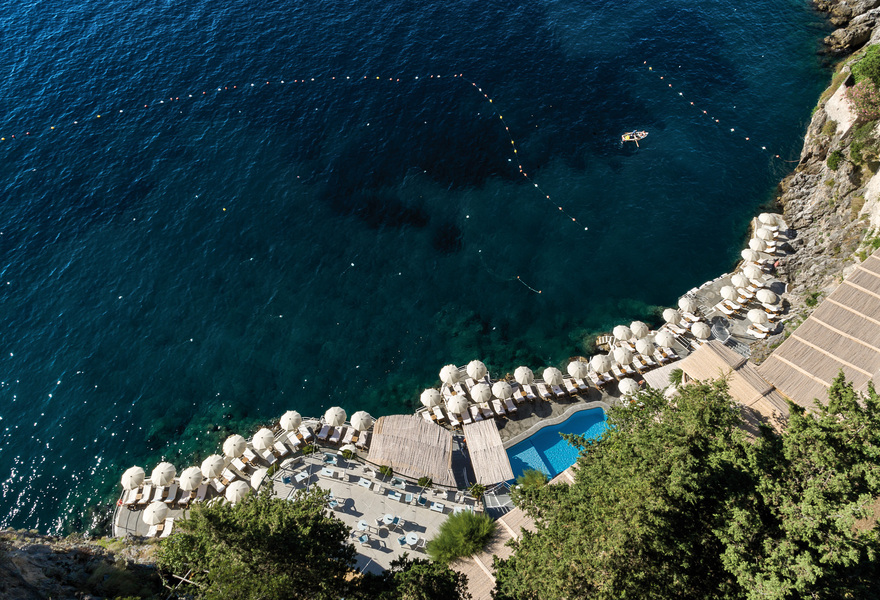 Ein luxuriöser Rückzugsort in atemberaubender Lage. Wunderschöne Zimmer in Weiß- und Cremetönen mit Farbklecksen und privaten Balkonen. Hervorragende Restaurants, ein Privatstrand (den man mit einem gläsernen Aufzug durch die Felswand erreicht) und große Gärten mit Zitrusbäumen. Ein ruhiger und romantischer Ort.