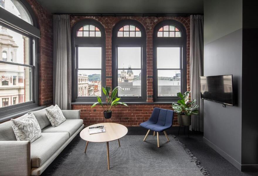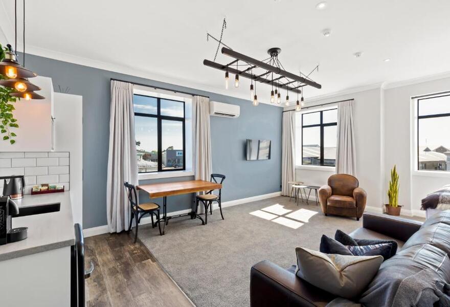Drei elegante Apartments mit zwei Schlafzimmern im restaurierten, denkmalgeschützten Investment House am südlichen Rand des Octagon im Zentrum von Dunedin. Die Apartments bieten eine klassische, charaktervolle Einrichtung mit gemütlichen Wohnzimmern, privaten Terrassen, gut ausgestatteten Küchen und beeindruckenden Stadtansichten. Ein schicker Ausgangspunkt für einen Aufenthalt in der Stadt.