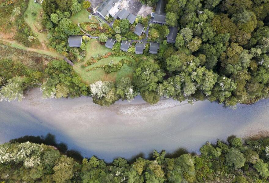 Eine 4-Sterne-Wildnis-Lodge im Abel Tasman National Park. Schickes, modernes Interieur ergänzt sich mit Möbeln im Retro-Stil. Die Zimmer und Suiten haben alle eine Terrasse mit herrlichem Blick auf den einheimischen Busch, die Feuchtgebiete und den biologischen Gemüsegarten. Familienfreundlicher Ausgangspunkt für Vogelbeobachtungen, Kajakfahrten und Wanderungen.