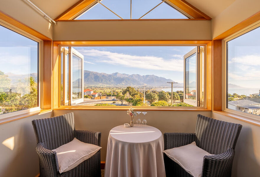 Ein schickes Boutique-Haus mit spektakulärer Küstenlage in Kaikoura. Die hellen Zimmer sind schlicht in Grau- und Weißtönen gehalten, während die Panoramafenster die Aussicht spektakulär einrahmen. Mit freundlichen Gastgebern, köstlichem Frühstück und sogar einer Champagner-Bistro-Bar ist dieses Haus kaum zu übertreffen.