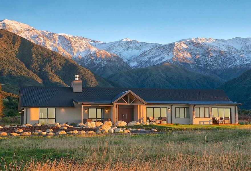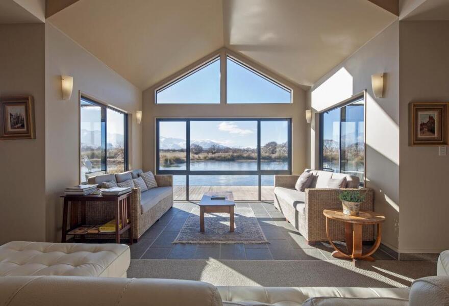 Eine charmante Lodge inmitten von zehn Hektar malerischer Gärten und Anlagen, umgeben von den Südalpen. Sechs geräumige Zimmer und Suiten bieten eine spektakuläre Aussicht durch raumhohe Fenster. Ein gemütliches B&B, das für Familien oder Gruppen als Ganzes gebucht werden kann.