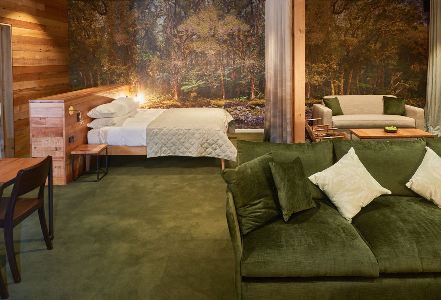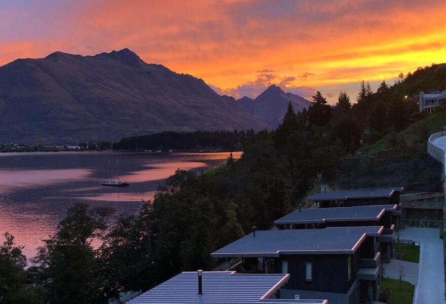 Luxuriöses Boutique-Hotel in Queenstown mit Fußbodenheizung, in Neuseeland hergestellten und entworfenen Möbeln und Bädern mit Glaswänden. Tolle Aussicht auf die Berge, Nähe zum Stadtzentrum und umweltfreundliche Praktiken.