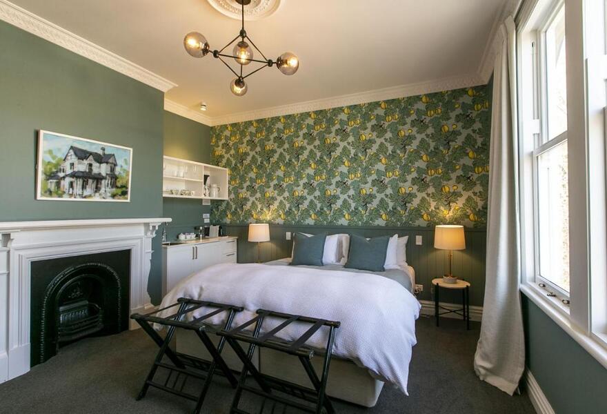 Dieses holzgetäfelte, zweistöckige Gebäude im Tudorstil ist der perfekte Rückzugsort für Paare, die eine der charmantesten Städte Neuseelands erkunden möchten. Entspannen Sie sich in den riesigen Doppelbetten mit integriertem Waschbecken, den eigenen Badezimmern und der gemütlichen Gemeinschaftslounge.