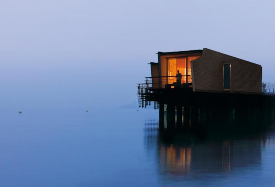 Eine einzigartige Designer-Immobilie, bestehend aus luxuriösen Pavillons auf Stelzen, mit Blick auf den Neuenburgersee und die Alpen. Die atemberaubend romantischen Zimmer nutzen die Aussicht durch die großen, vom Boden bis zur Decke reichenden Fenster. Zeitgenössisches Design und feiner Komfort in allen Räumen. Der ideale Ort, um dem Alltag zu entfliehen.