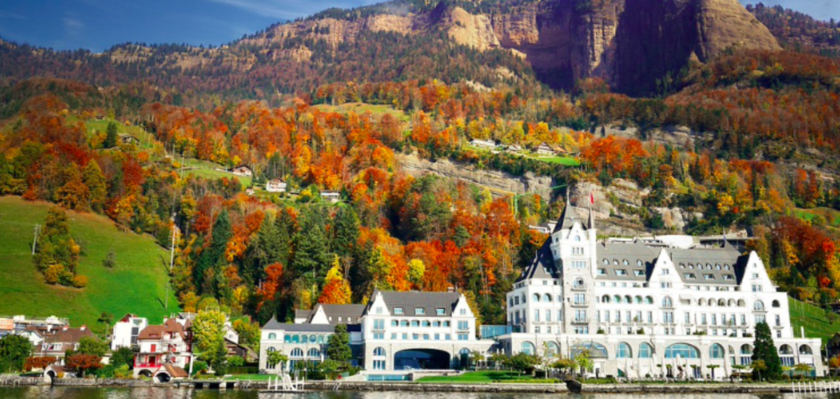 Romantisch gelegenes, palastartiges 5*-Hotel am Ufer des Vierwaldstättersees mit Blick auf die wunderschönen Alpen. Siebenundvierzig glamouröse Zimmer bieten eine traumhafte Aussicht. Das Hotel verfügt über ein erstklassiges Spa und einen Infinity-Pool. Ein idealer Ausgangspunkt, um die atemberaubende Region zu entdecken.