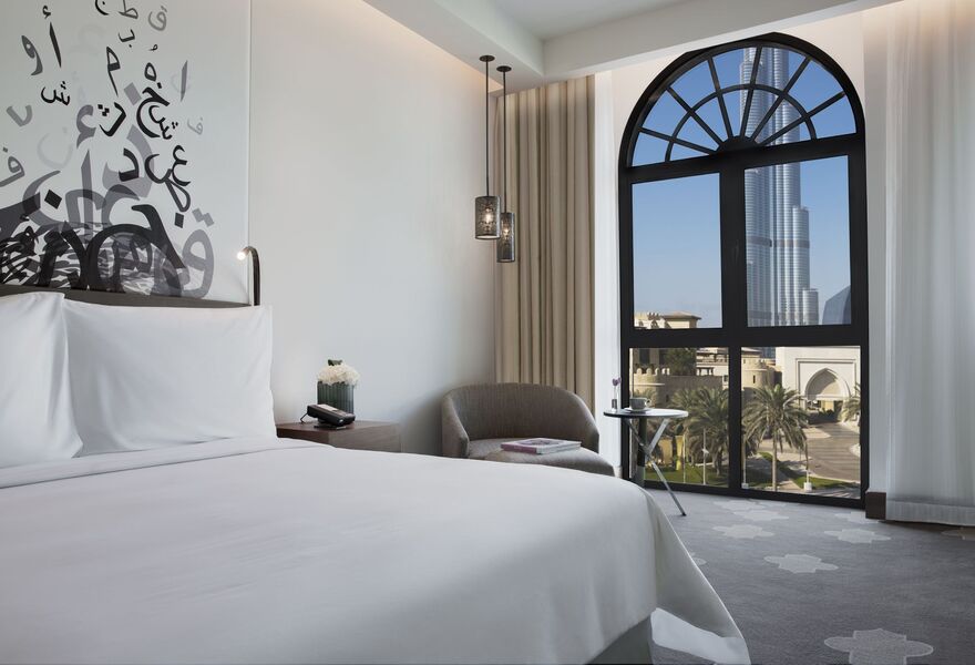 Ein elegantes Hotel in Downtown Dubai, das durch seine raumhohen Fenster einen atemberaubenden Blick auf die Skyline der Stadt und den Burj Khalifa bietet. Das schicke, moderne Dekor verbindet Fünf-Sterne-Luxus mit jeglichem Komfort. Vielfältige gastronomische Angebote, ein Spa und ein Fitnesscenter runden das Bild ab. Eine Stadtflucht mit allem Drum und Dran.