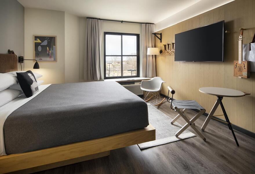 Ein kleines, modernes Hotel in der Nähe des Stadtzentrums von Nashville mit eleganten, maßgefertigten Vintage-Möbeln und Originalkunstwerken an den Wänden. Nebenan befindet sich das bekannte Restaurant The 404 Kitchen. Gemütlich und komfortabel. Schlicht und stilvoll.