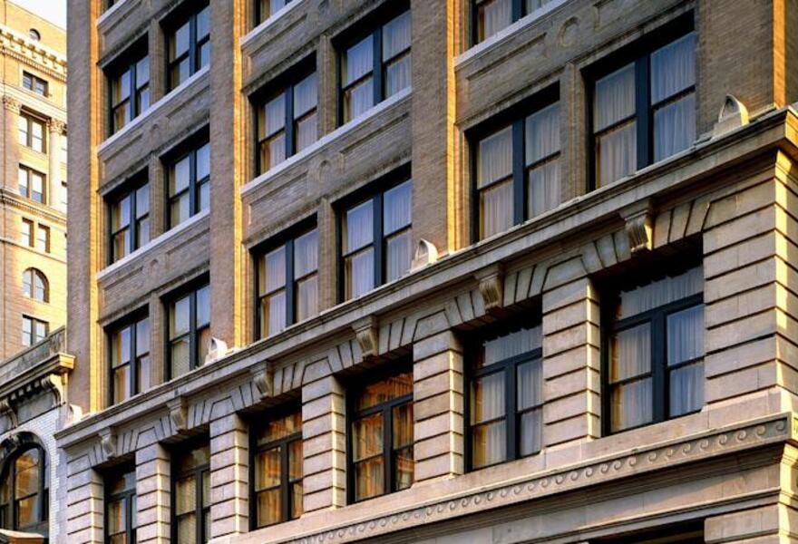 Modernes Boutique-Hotel in der Innenstadt mit trendigem Restaurant, Speakeasy-Bar und einladendem Café. Das viktorianische Gebäude aus rotem Backstein verleiht den gemütlichen Zimmern mit Art-Déco-Einflüssen einen besonderen Charakter; einige verfügen über 17 Fuß hohe Decken, Fensterläden, poliertes Holz und vergoldete Oberflächen. Beliebt bei den coolen Leuten.