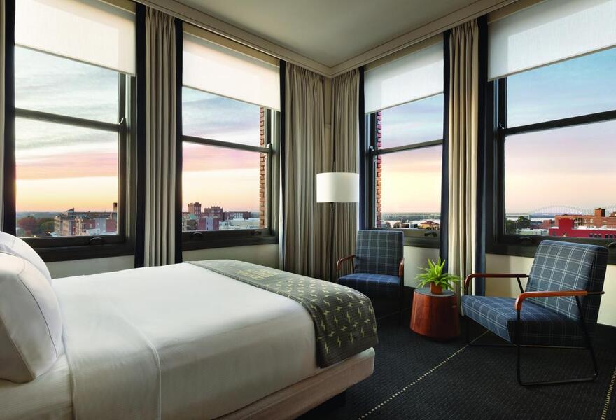 Dieses Luxushotel befindet sich in einem jahrhundertealten Bahnhof und vereint alles, was Memphis ausmacht - von der Geschichte bis zur Musik. Die Zimmer verfügen über riesige Originalfenster, hohe Decken und ein klares, modernes Design. Im Erdgeschoss gibt es ein beliebtes französisches Restaurant, eine lebhafte Bar und einen Live-DJ. Eine unterhaltsame und doch elegante Wahl.