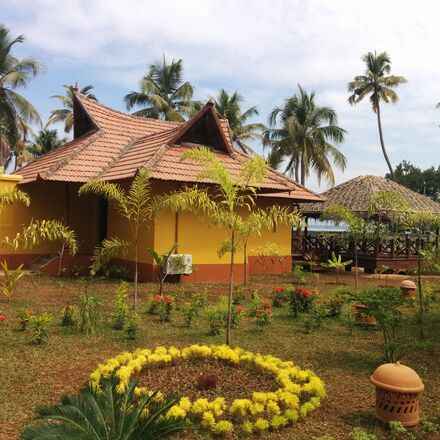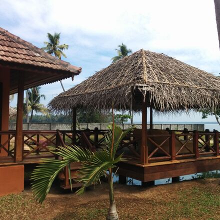 Durch schattige Palmenhaine gelangen Sie zu diesem wunderschön angelegten Öko-Rückzugsort an einem herrlichen See mit einem atemberaubenden, ununterbrochenen 180-Grad-Blick. Die Unterkunft besteht aus drei geräumigen Deluxe-Cottages - zwei davon mit ihren eigenen privaten Holzhütten, in denen die Gäste schmackhafte, gut portionierte Mahlzeiten in Privatsphäre genießen oder sich auf bequemen Sonnenliegen oder in einer der doppelten Hängematten des Gartens entspannen können, während sie Eisvögel dabei beobachten, wie sie wie eine Bombe ins Wasser tauchen und grünbeinige Reiher den Schlamm nach Würmern durchstöbern. Der Schwerpunkt liegt auf tadellosem Service und entspanntem Barfuß-Luxus in einer herrlich friedlichen Umgebung. Das Frühstück wird im Hauptgebäude serviert, vorbei an Heilkräutern wie Tulsi, die in Form des OM-Symbols gepflanzt sind. Antike steinerne Gottheitsskulpturen, schwere Holzmöbel und kunstvoll geschnitzte Holzdetails machen das vom belgischen Ehepaar Jan & Christel Arryn mitgestaltete Haus zu einem beeindruckenden Designprojekt. Ein wirklich besonderer Ort, um richtig zu entspannen.