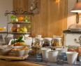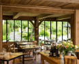 Im Restaurant wird regionale Gourmetküche serviert, die hauptsächlich lokale und saisonale Produkte verwendet.Bibliothek