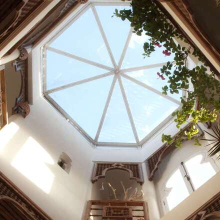 Jedes Zimmer hat einen bezaubernden Zedernholzbalkon, der von lokalen Handwerkern handgeschnitzt wurde.Dachterrasse