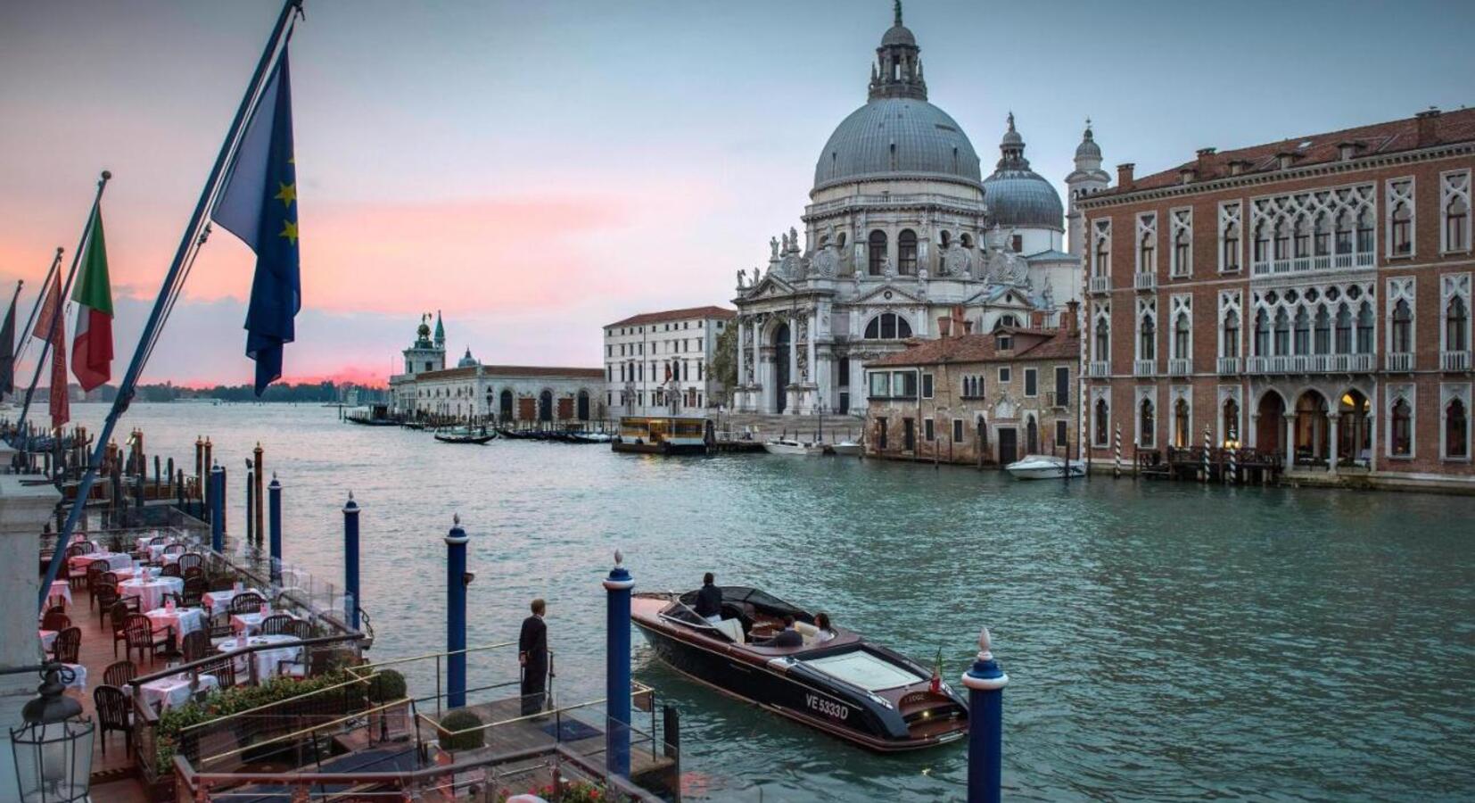 "On the most eye-catching stretch of the Grand Canal, looking across the water to Santa Maria della Salute, one of Venice’s greatest churches, and to the Palazzo Venier dei Leoni, home to the Guggenheim Museum."