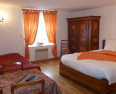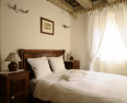 A vine-festooned gallery leads to the bedrooms where beautiful, 18th-century painted interiors and furniture, dark panelled timber floors, and oak beams have been conserved.