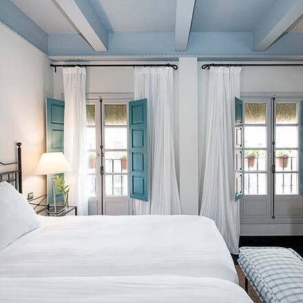 Dieses Haus aus dem 18. Jahrhundert, das eine Reihe schöner Innenhöfe umschließt, gehört zur gehobenen, einheimischen Hospes-Gruppe. Die eleganten, minimalistischen Zimmer sind mit modernster Technik ausgestattet und verfügen über kühle Fliesenböden und Möbel im Kolonialstil. Es gibt viele Plätze zum Sitzen und Entspannen, darunter eine Bibliothek (eines von mehreren Wohnzimmern) und eine Dachterrasse mit einem halben Dutzend beliebter Liegestühle und einem Tauchbecken. Das Restaurant Senzone, eine schicke Mischung aus Leder und Holz, bietet lokale Spezialitäten.
