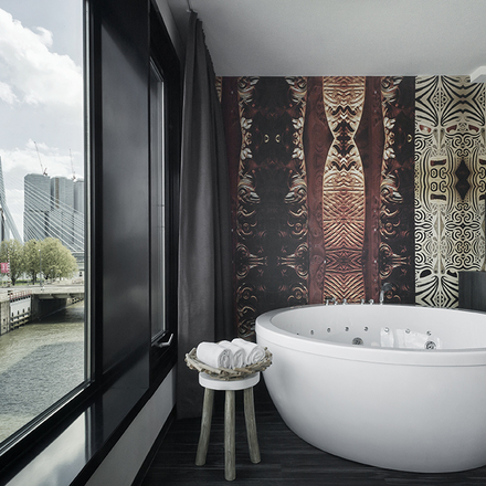 Dies ist nicht nur ein protziges Hotel, sondern auch an einem protzigen Ort: mit Blick auf den ältesten Hafen der Stadt, den Leuvehaven, fünf Minuten vom Fluss entfernt und mit den meisten Sehenswürdigkeiten der Stadt in 15 Minuten zu Fuß erreichbar. Die 10 Etagen des auffälligen Gebäudes aus Glas und Aluminium sind den Kontinenten gewidmet - Ozeanien, Südamerika, Polar... - mit kühn gemusterten Teppichen und Tapeten und gläsernen Aufzügen, die Sie von der kühl-weißen Rezeption aus nach oben und unten bringen. Alle 215 Zimmer und Suiten sind großzügig geschnitten, mit bodentiefen Fenstern und stilvoller Ausstattung - Nespresso-Maschinen, Whirlpool-Badewannen, Fernsehgeräte im Bad - als Standard. Der Stil ist schlicht und übersichtlich, mit klaren Möbeln und stimmungsvoller Beleuchtung; mehr als die Hälfte der Zimmer hat eine eigene Sauna. Im achten Stock gibt es ein Spa und einen Pool; Achtung: Sauna und Dampfbad sind gemischt, und Badekleidung ist nicht erlaubt! Das Restaurant bietet eine internationale Speisekarte; wenn Sie eine lebhaftere Szene suchen, gibt es in der Nähe zahlreiche Restaurants. Das Frühstück hingegen ist reichhaltig und bietet einen tollen Blick auf den Hafen. Außerdem gibt es eine anständige Cocktailbar mit einer Terrasse für wärmere Tage.