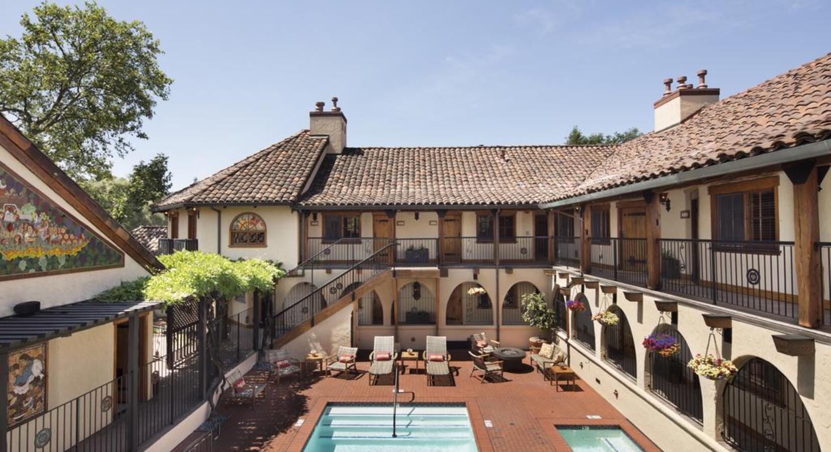 This hotel is small enough to for moments where you have outdoor fireplace to yourself but big enough to provide the service and amenities you’d expect in Napa Valley. Hanging white lights, cushy outdoor chairs and fire pits around the pool at Rancho Caymus Inn make it ideal for relaxing, day or night.