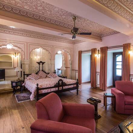 Im Royal Heritage Haveli fühlt man sich wie in einem Familienhaus mit einladendem Personal. Das Anwesen, das in einem ehemaligen königlichen Jagdschloss untergebracht ist, ist nicht auffällig, sondern eher altmodisch und äußerst charmant. Jasminbäume, intime Gärten, Rasenflächen und Sitzecken im Innenhof sorgen für ein ruhiges Ambiente, das durch einen großen, sanften Swimmingpool unterstrichen wird. Jede Suite ist individuell dekoriert, komfortabel und voller Charakter, ohne sich zu sehr anzustrengen. Das Abendessen und das liebevolle Frühstück werden auf der Terrasse serviert. Die Sehenswürdigkeiten von Jaipur sind mit dem Uber in einer kurzen Fahrt zu erreichen. Nach einem Tagesausflug ist dieser friedliche Rückzugsort der perfekte Kontrapunkt zu der sehr geschäftigen Stadt.