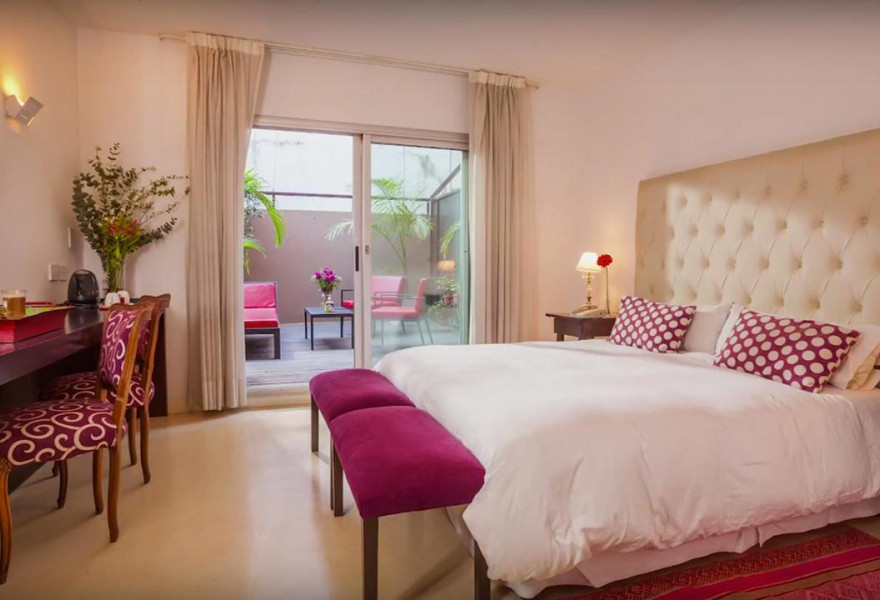 A traditionally dressed boutique hotel in the heart of the tranquil district of City Bell. Rooms feature patterned wallpaper, rich hues and antique furniture. An atmospheric lounge with plush leather sofas is the perfect spot to unwind with a drink. Indulgent breakfasts are served. A charming stay.