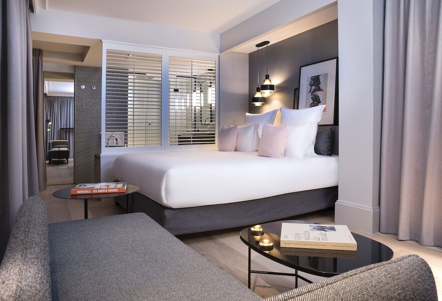 Nestled in the heart of the Latin Quarter, this boutique hotel breathes new life into a 19th-century mansion. Think high moulded ceilings, marble fireplaces, and velvet by Pierre Frey. With a cosy tea salon, an honesty bar, and a hammam, it’s an elegant retreat that feels effortlessly Parisian.