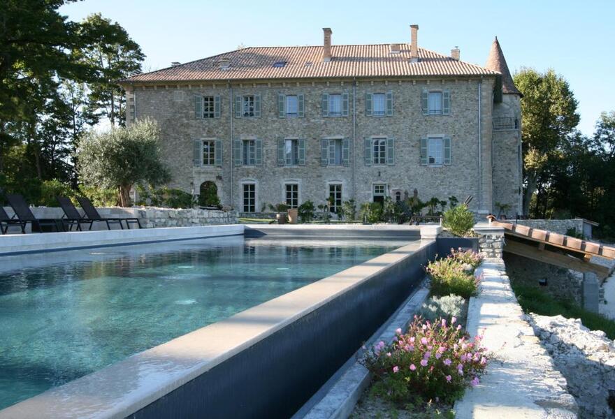 A beautifully renovated chateau with turret bedrooms, parklands, and a lake. The large pool and elegant interiors perfectly marry modern decor with the historical property. The herbed gardens and lavender banks fill the air with a delicate aroma. Complete with some of the region's finest cuisine.