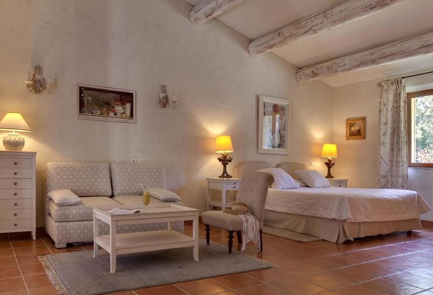 Ein luxuriöses provenzalisches Haus mit riesigen Räumen und einem herrlichen Park. Die Zimmer und Suiten sind individuell in neutralen Tönen eingerichtet und mit eleganten Möbeln ausgestattet. Es gibt einen riesigen Swimmingpool in einem hübschen Garten und in der Nähe gibt es viel zu erleben. Romantisch, friedlich und verwöhnend.