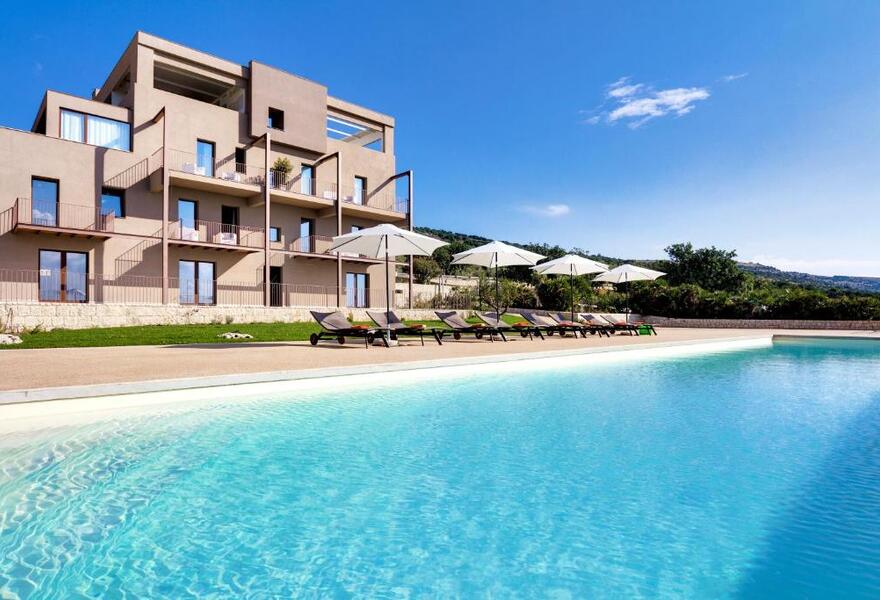 A contemporary hotel overlooking the hills of Ragusa. Its decor blends modern minimalism with rustic Sicilian charm, creating a tranquil atmosphere. Guests can enjoy the outdoor pool, a renowned restaurant serving local cuisine, and a vibrant wine bar. A relaxing stay with an appealing price tag.