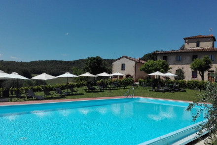 18th century country house which has been sympathetically restored and now offers traditional rooms and suites with terra-cotta floors and exposed wooden beams. Lovely outdoor pool and terrace restaurant with glorious views of surrounding vineyards and olive trees. Stunning, remote and romantic.