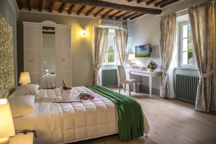 Le Dimore del Borgo offers apartments and suites centrally located in the historical town of Lucca. The rooms are spacious and bright, featuring parquet flooring and modern white furnishings. With chefs, interpreters, baby sitters and personal shoppers all on call, nothing has been missed.