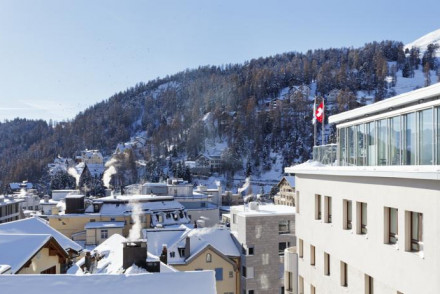 A lively hotel, packed with entertainments in the centre of St. Moritz. Simple alpine chic rooms with balconies overlooking the mountainside. When your not on the slopes you can enjoy the plethora of facilities on offer, including three restaurants, three bars, a night club, and a spa area.