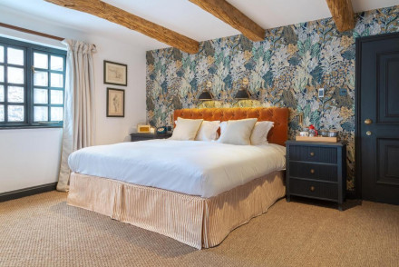 Ein reizvolles Anwesen aus dem 15. Jahrhundert, das in ein gemütliches Landhotel mit einem Pub umgewandelt wurde. Traditionelle Holzbalken, offene Ziegelsteinkamine und eine Fassade im Tudor-Stil sorgen für historischen Charme. Das Hotel verfügt über ein Spa und ein gehobenes Restaurant auf demselben weitläufigen Anwesen und eignet sich sowohl für Paare als auch für Familien.