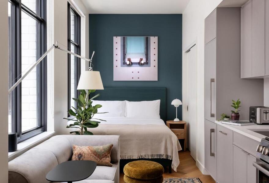 Set within the landmark Book Tower skyscraper, this apartment hotel offers accommodation for an extended stay or short trip. Each unit features curated artwork, hardwood floors and vintage rugs, all with fully-equipped kitchens, ample work space, and 24-hr concierge. A stylish home-from-home.