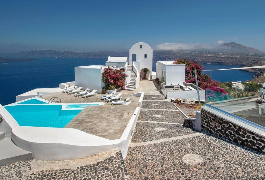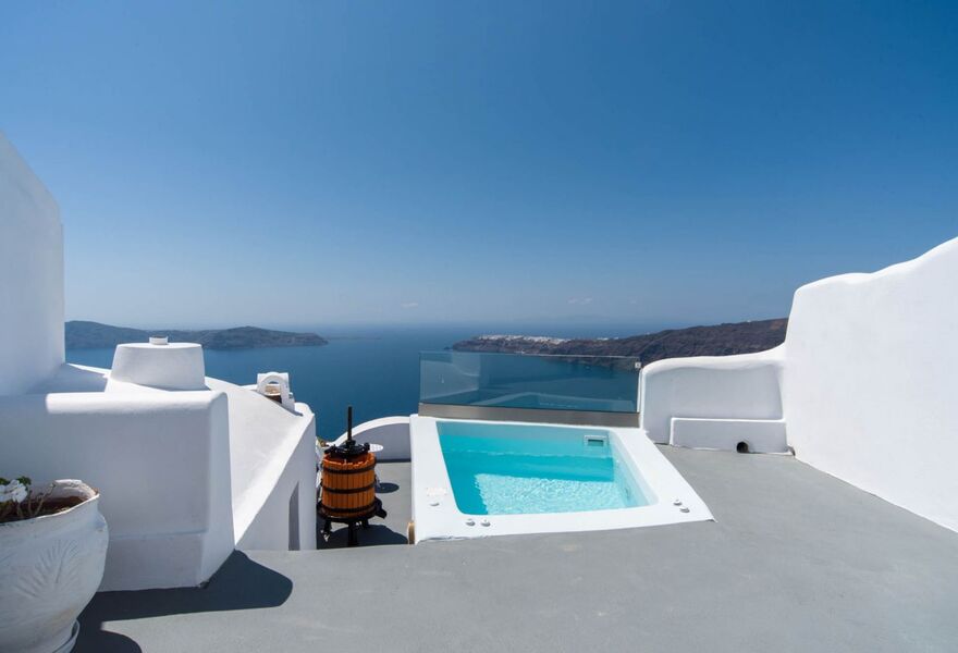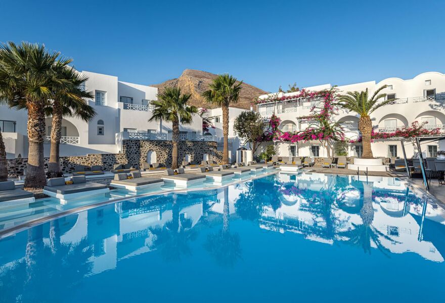 • Total relaxation - Just steps from the renowned black volcanic sands of Kamari beach, with spa, hot tubs and cocktails by the pool.