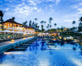 Anantara means ‘without end’ in Sanskrit. This hotel very much aims for this spirit of freedom, movement and harmony. As a complex it’s been thoroughly thought through and is well landscaped. Buggies take you to tennis courts or you can bicycle instead. There are three restaurants (Journeys has a mix of international and local cuisine and a fully-stocked buffet, Verele sticks to the unique local flavours, and the Italian Il Mare rests above on an ocean facing cliff top). Guests are given a theatrical welcome with traditional blessings to the sound of a conch, three girls alternately singing and drumming. The rooms have jac and teak wood and the furnishing includes rattan chairs with tweed cushions. Electric blinds break the room for privacy. Verandahs look out to sea and around the resort are little lobster basket lights creating a spiders’ web effect. Lounge chairs are actually absorbed into the two lengthy infinity pools. Out to sea fishermen brave the rocks. And it’s mercifully mosquito free. Peace haven or "piece of heaven".....whichever way you look at it, it’s assuredly pampering and tranquil.