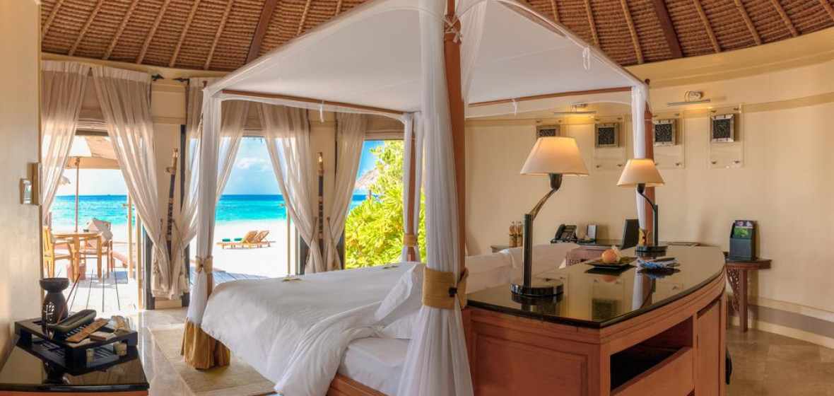 Powdery white sands and emerald green waters are host to this resort that introduces a little touch of the Orient to the Maldives. Elegant yet rustic, there are just 48 circular villas, some nestled in the gardens, most on the edge of the beach. Watersports, marine biology classes, a world class spa and PADI diving centre provide the daily entertainment while two restaurants offer delectable cuisine.
